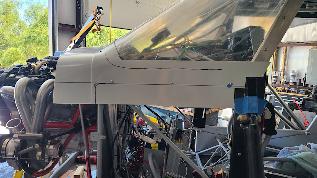 Once it fits at the firewall correctly, I'll trim the sides to fit and drill the screw holes. Then I'll fit the boot cowl.